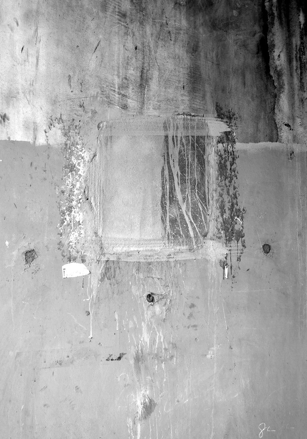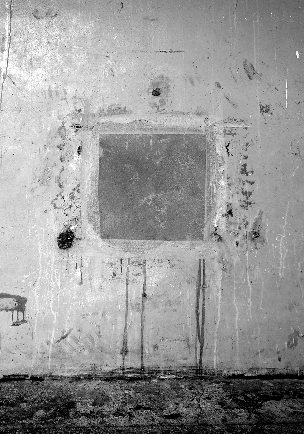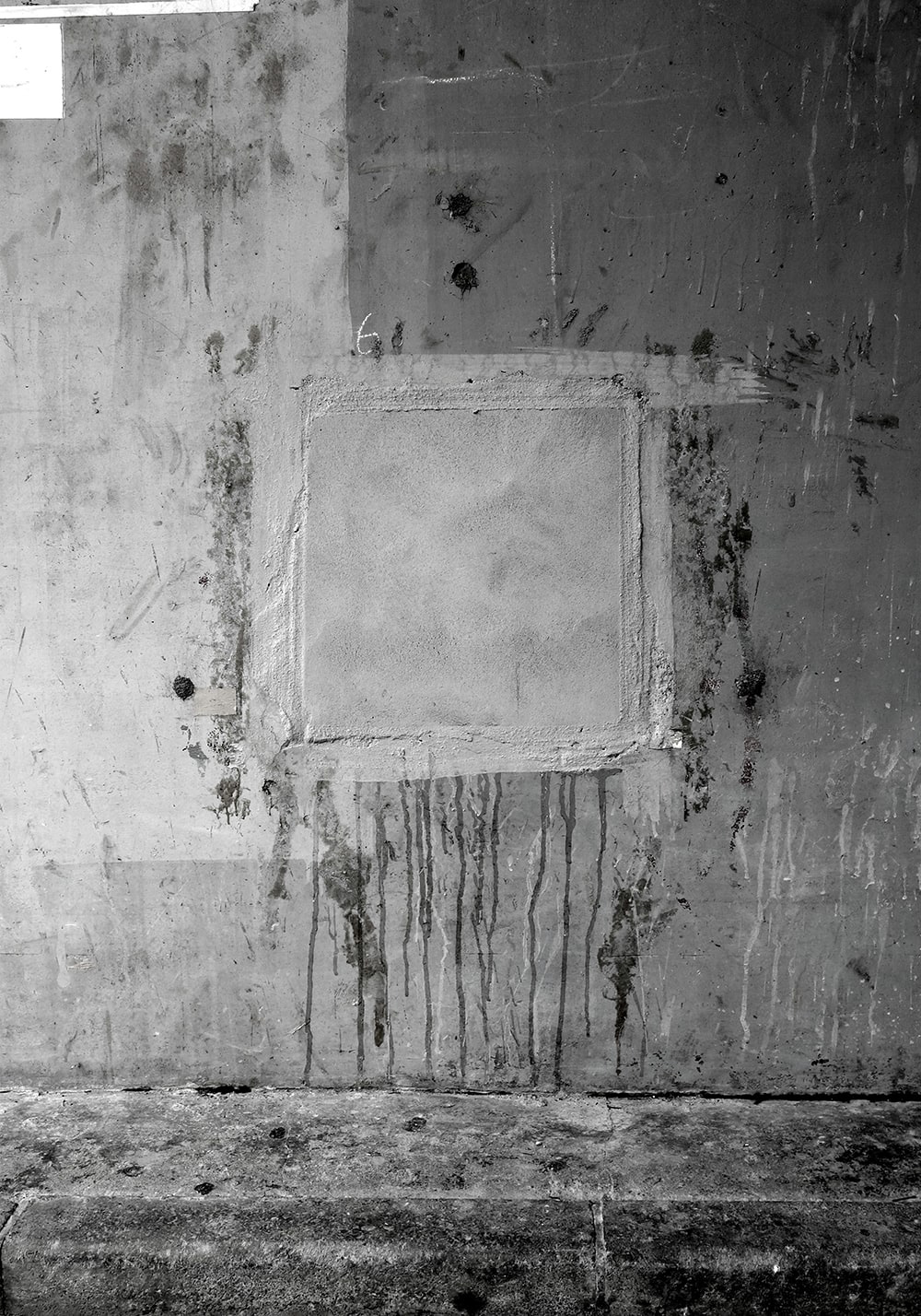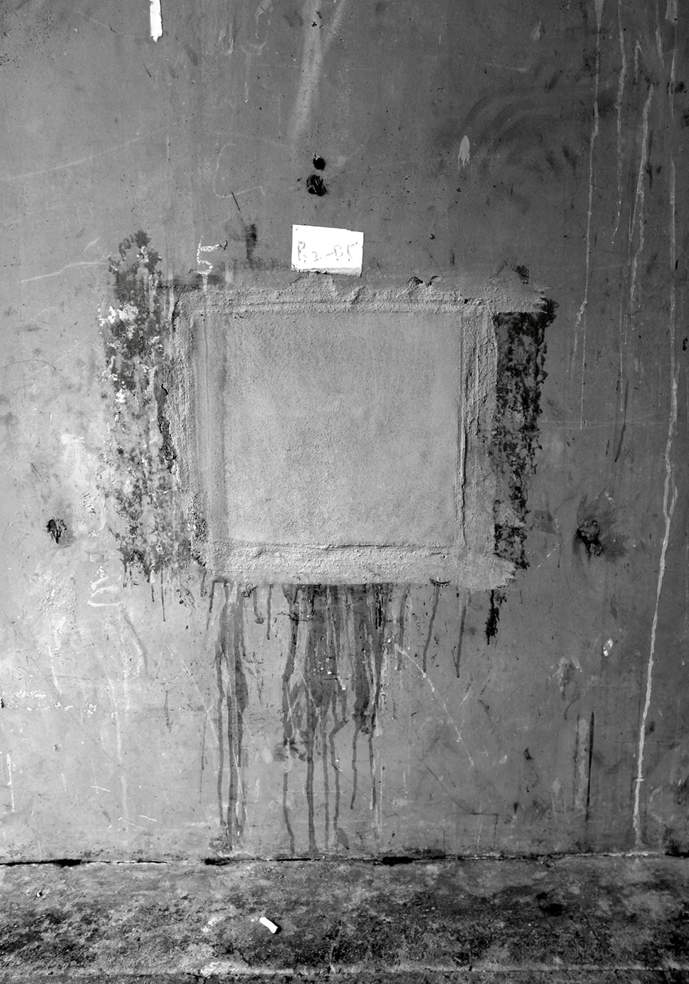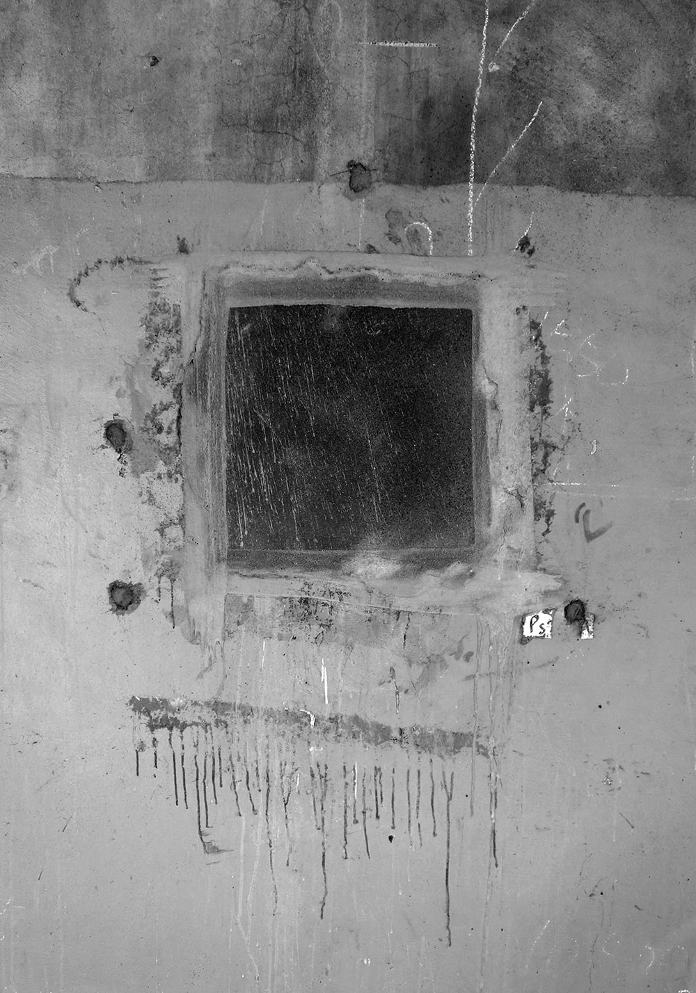 Closed square holes lined up under the elevated railway tracks. A few days later they were painted and disappeared.