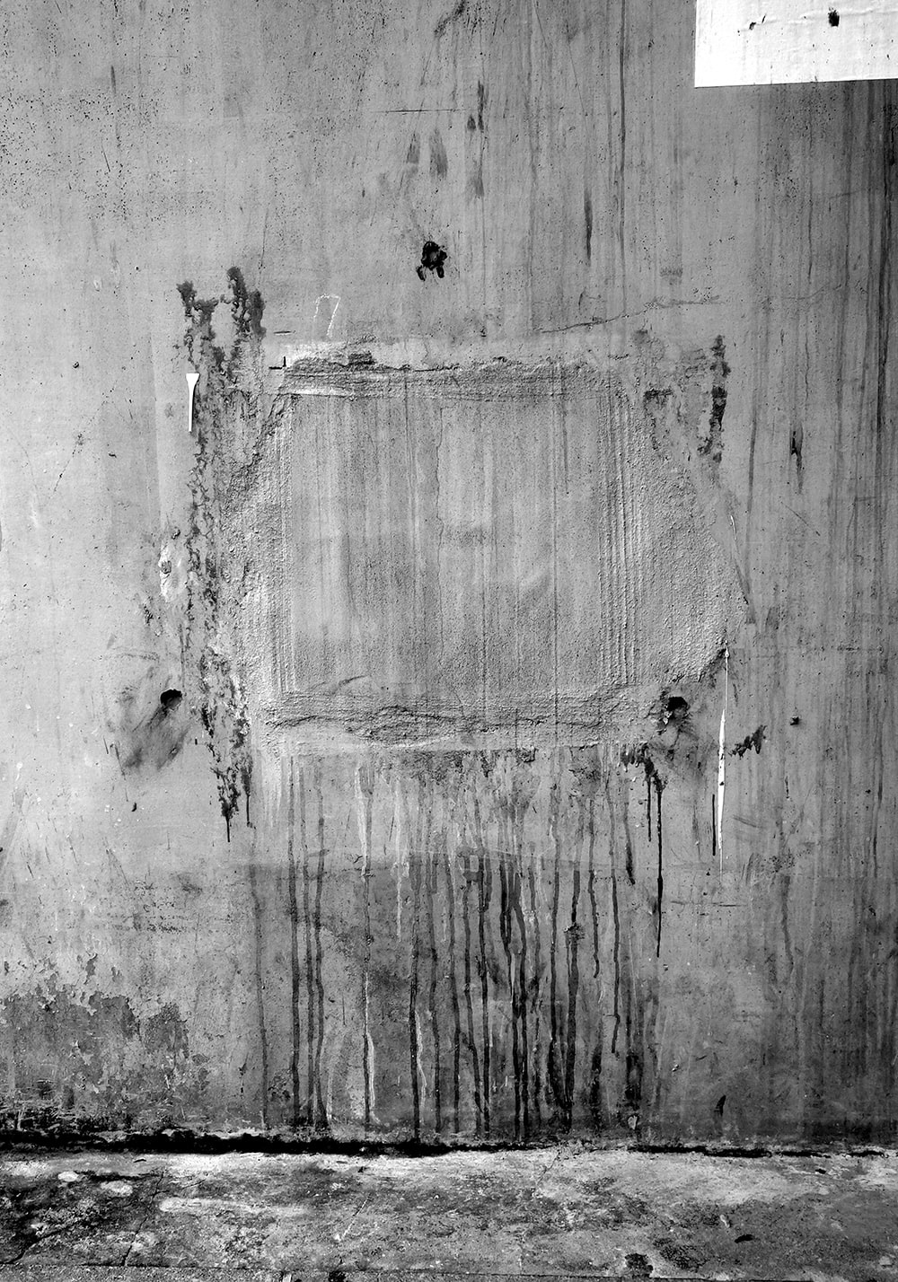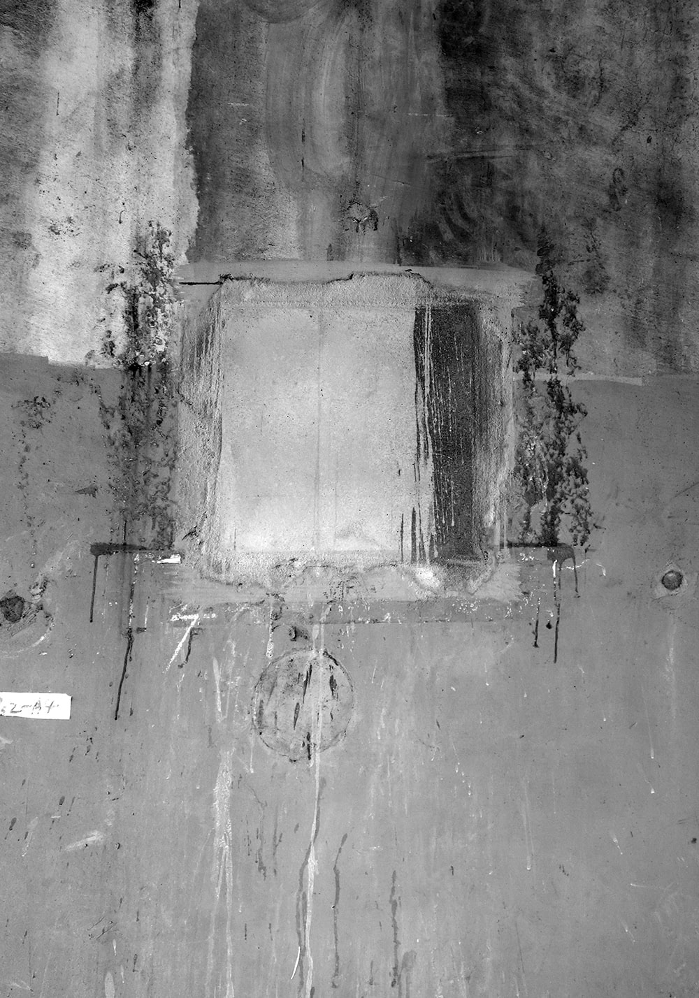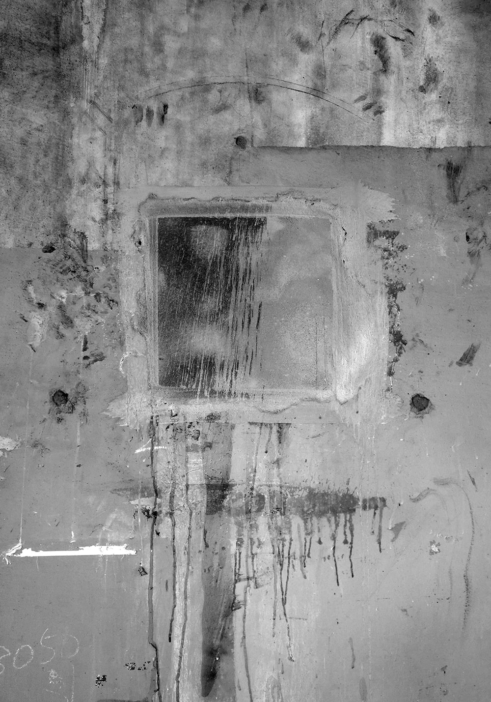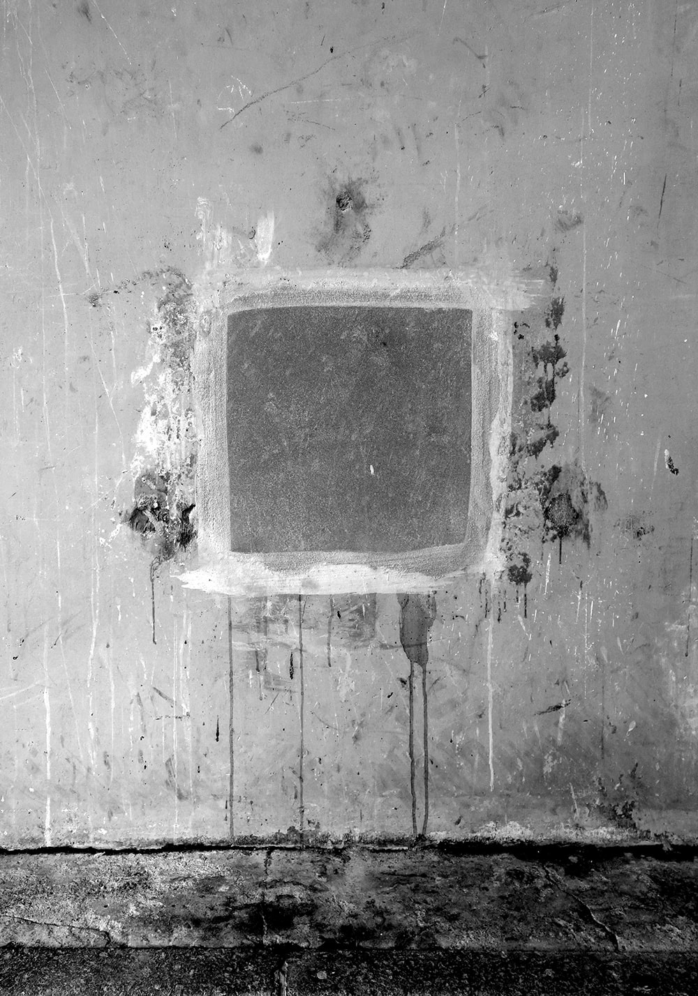 Closed square holes lined up under the elevated railway tracks. A few days later they were painted and disappeared.
