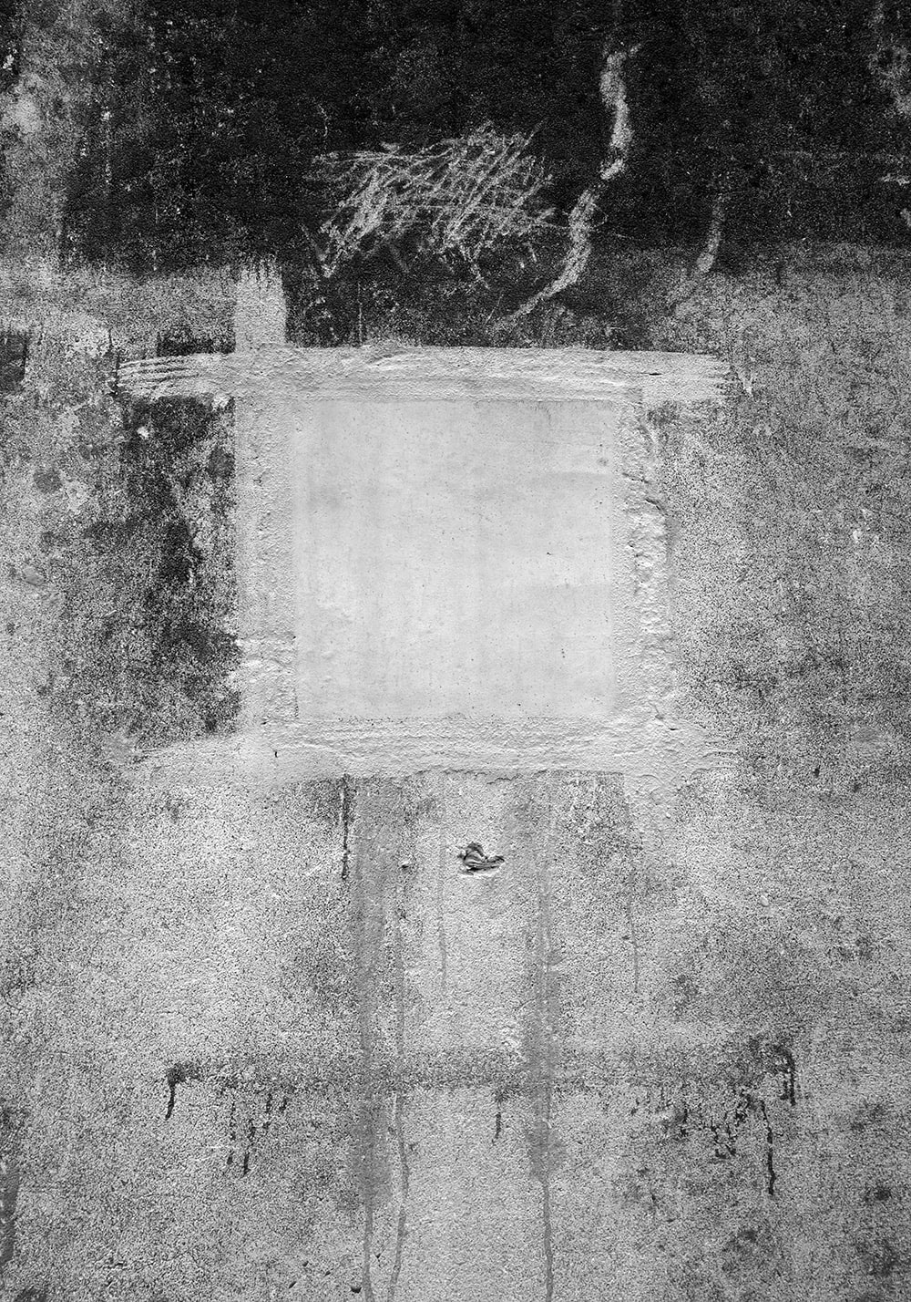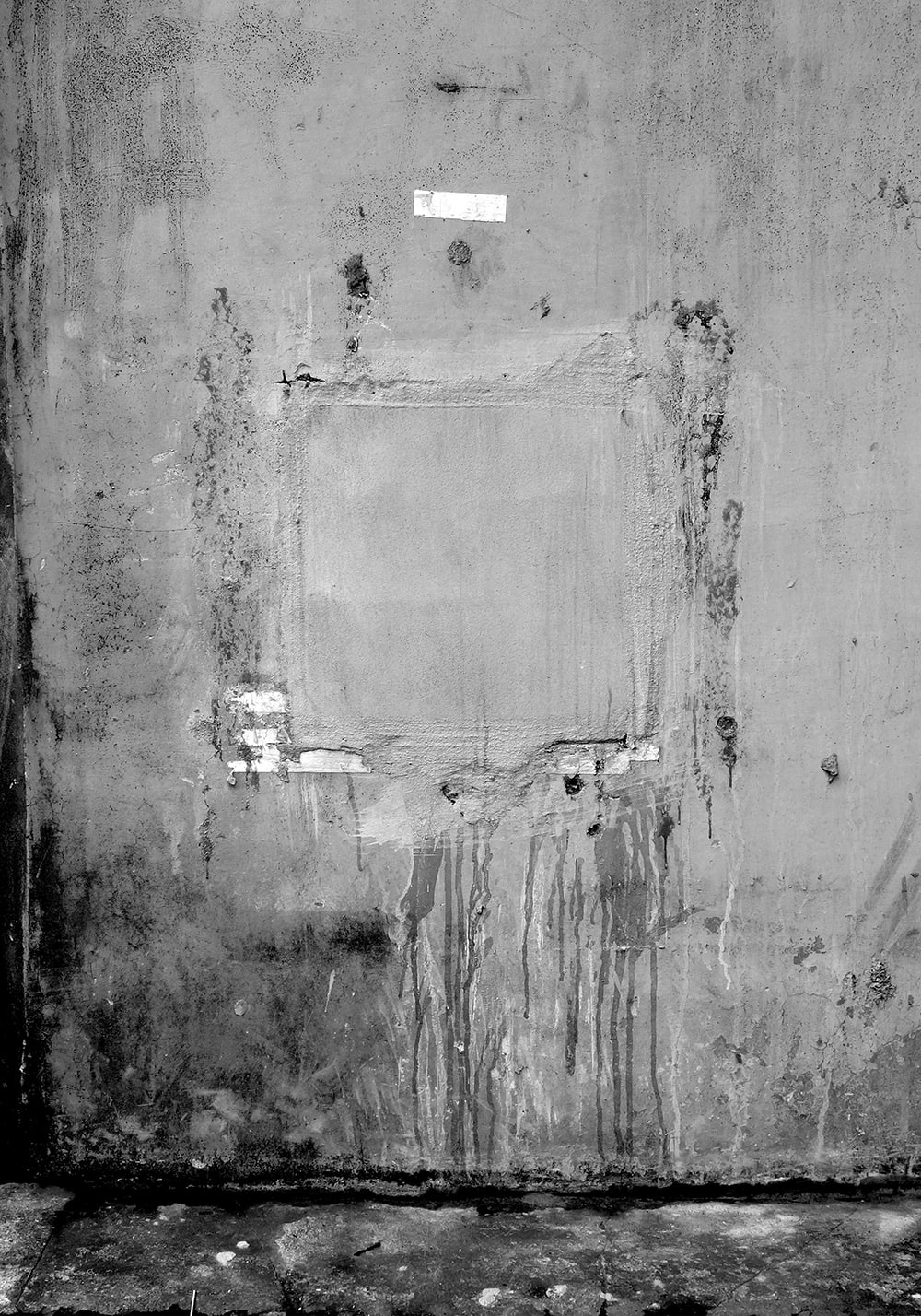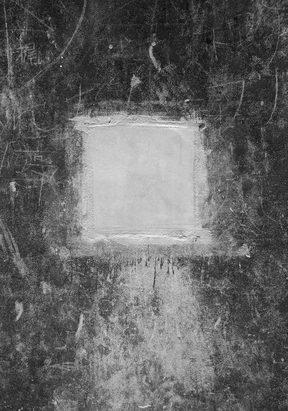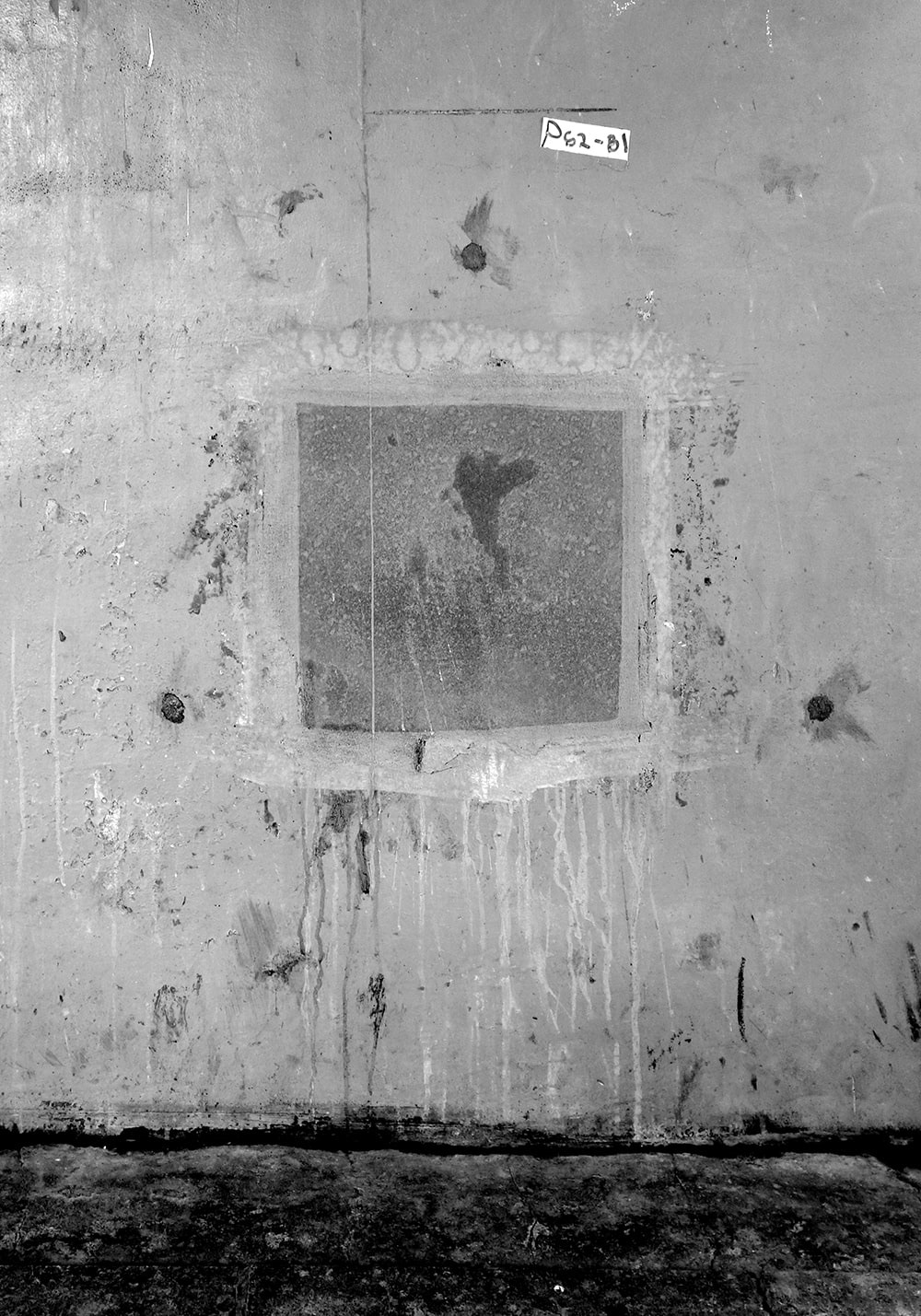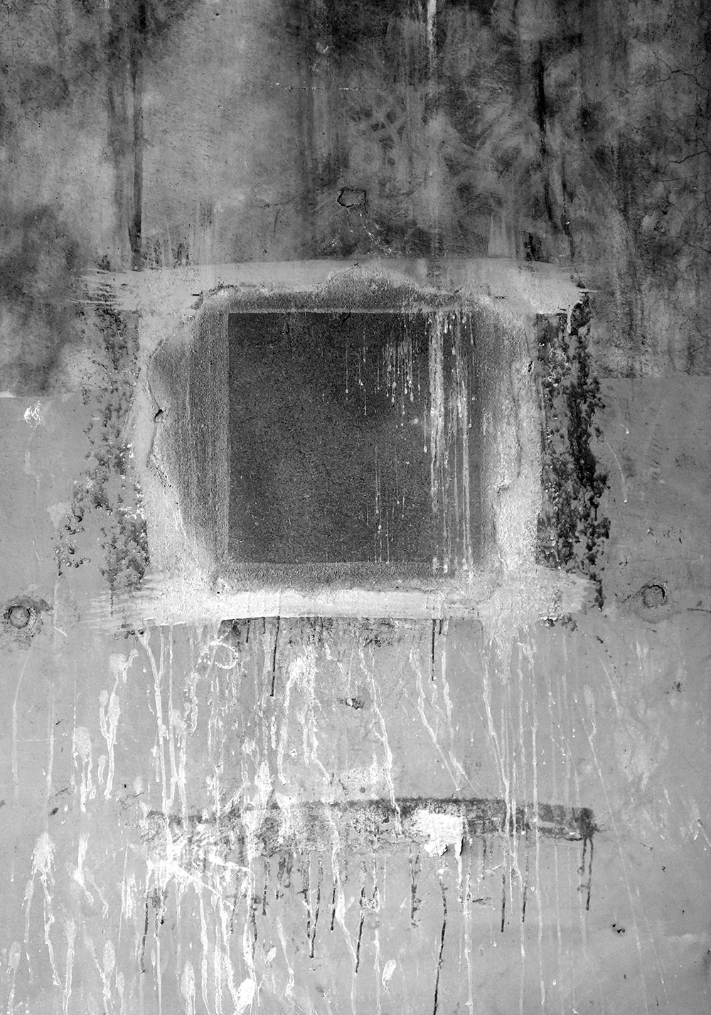 Closed square holes lined up under the elevated railway tracks. A few days later they were painted and disappeared.